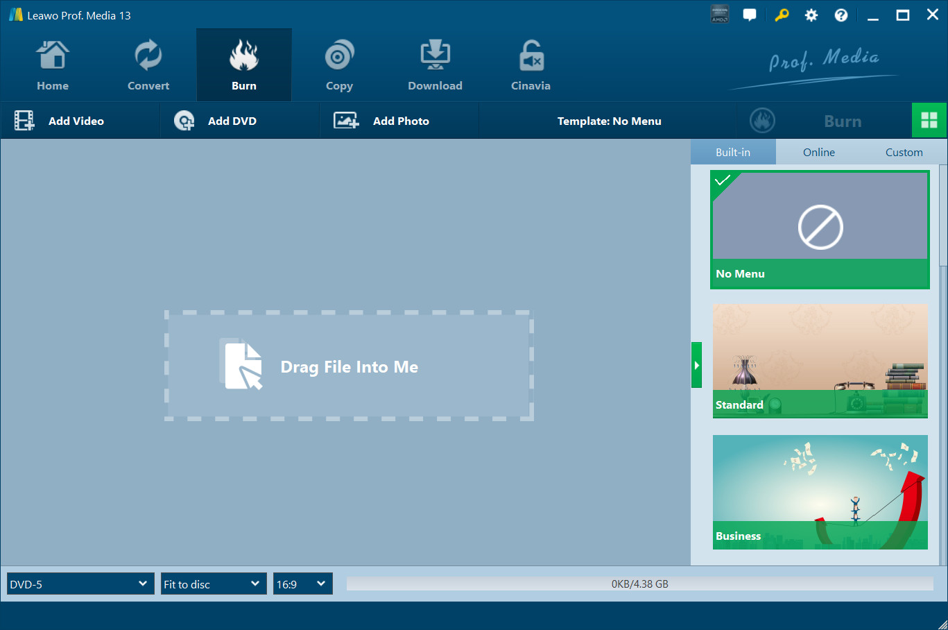 Leawo Blu-ray Creator is a Blu-ray/DVD burner for you to easily burn videos to Blu-ray (BD25, BD50) and DVD (DVD-9, DVD-5) disc and create Blu-ray/DVD folder and/or ISO image file. It supports burning a wide range of videos in formats like AVI, MKV, MOV, MP4, WMV and FLV to Blu-ray/DVD disc easily. Also it’s easy to burn ISO file to Blu-ray/DVD disc. And this burner program is capable of burning video with 3D effect, editing videos, creating photo slideshows and burning them to Blu-ray/DVD disc. What’s more, the disc menu is customizable. You can edit the menu according to your personal preference.
