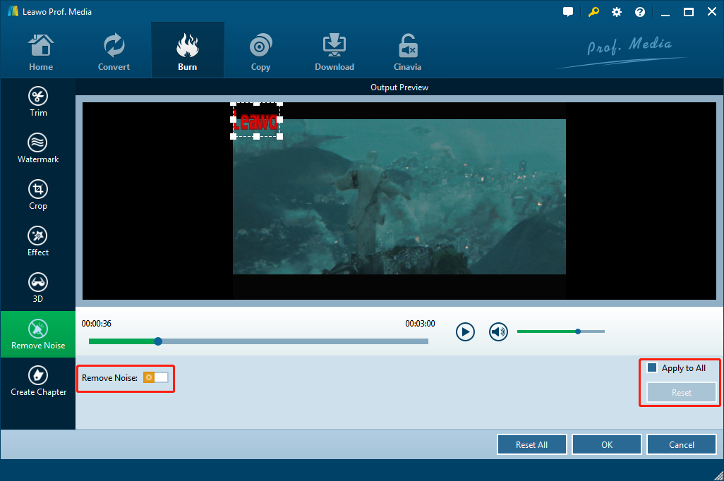 3.4 Durch Aktivieren von Auf alle anwenden können Sie das Wasserzeichen auf alle Videos anwenden oder das Wasserzeichen durch Klicken auf die Schaltfläche Zurücksetzen rückgängig machen.