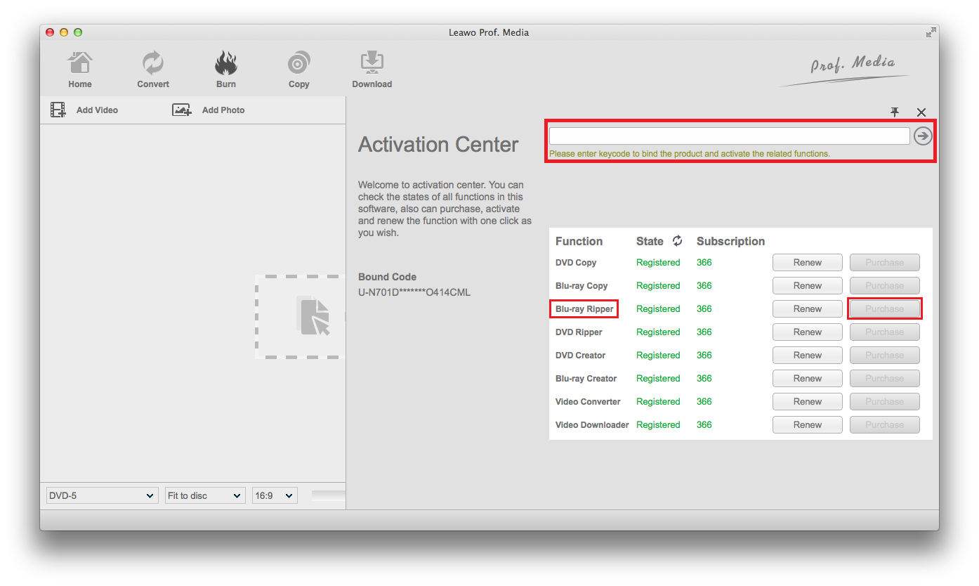 Die unregistrierte Version des Leawo Blu-ray Ripper für Mac ist in Funktionsumfang und Funktionalität eingeschränkt. Um vollen Zugriff auf alle Funktionen des Leawo Blu-ray Rippers für Mac zu erhalten, folgen Sie den folgenden Anleitungen und registrieren Sie das Programm.