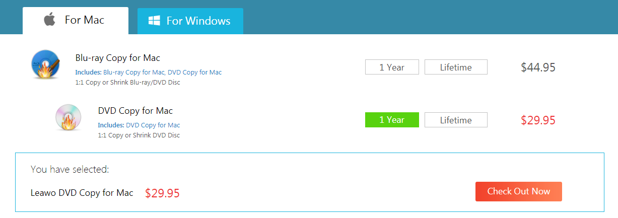 Wenn Sie keinen Code haben, klicken Sie auf die Schaltfläche Kaufen neben DVD Copy. Es führt Sie zur Kaufseite von Leawo DVD Copy für Mac. Sie können einen einjährigen oder lebenslangen Registrierungscode erhalten, je nach Ihren Bedürfnissen. Klicken Sie anschließend unten auf die Schaltfläche Zur Kasse gehen, um zur Zahlungsseite zu gelangen und den Code zu bezahlen. Nachdem Sie den Registrierungscode erhalten haben, öffnen Sie das Aktivierungscenter erneut und geben Sie den Code in das Feld ein, um Leawo DVD Copy für Mac zu aktivieren.