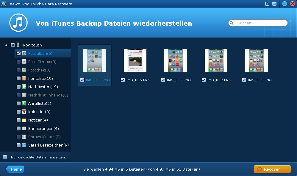 Falls Sie sich Sorgen darum machen, dass Sie Ihr iPhone nach einem Jailbreak nicht wiederherstellen können, lesen Sie besser die Anweisungen unten um zu erfahren, wie man mit einem iTunes Backup ganz einfach wiederherstellt und zwar mit einem iPhone/iPad/iPod Touch Datenrettungswerkzeug. Wenn Sie nach einem Jailbreak Daten verloren haben, können Sie mit diesem Tool auch die verlorenen Daten wiederherstellen. Vorausgesetzt Sie haben nach dem Jailbreak ein Backup Ihres iPhones angelegt.