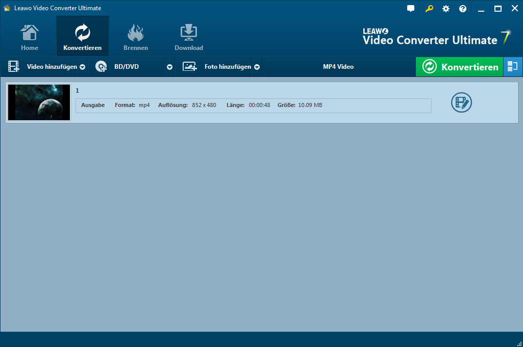 Im Hauptmenü, klicken Sie auf die große grüne Schaltfläche “Konvertieren”. Verstellen Sie die Ausgabe-Verzeichnis in der “Speichern unter” und klicken Sie auf die untere Schaltfläche “Umwandlen” , um die Konvertierung von generierten Foto-Diashows auf gewünschte Format zu starten.