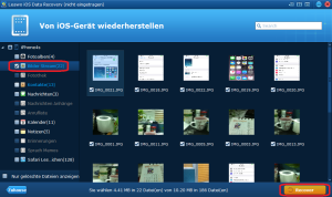 Obwohl Leawo iOS Data Recovery die gelöschte Fotos direkt vom iPhone nicht wiederherstellen kann, hilft es, die iPhone Fotos auf den Computer zu sichern. Wenn die Fotos in iPhone verfügbar ist, kann der Anwender diese Fotos auf den Computer leicht wiederherstellen.