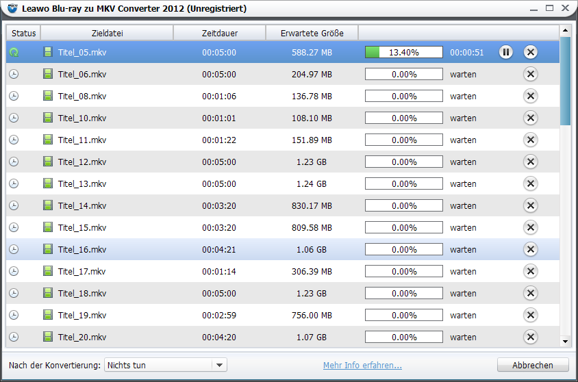 Neben der Umwandelung von ISO-Dateien in MKV kann Leawo Blu-ray zu MKV Converter auch jede Blu-ray und DVD Dateien schnell und verlustfrei in MKV umwandeln: