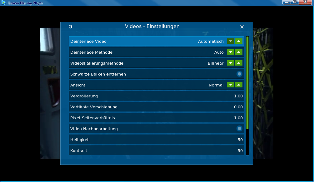 Oben links im Wiedergabefenster dieses tollen MKV Video Players können Sie während der Wiedergabe auch Videoeinstellungen vornehmen.