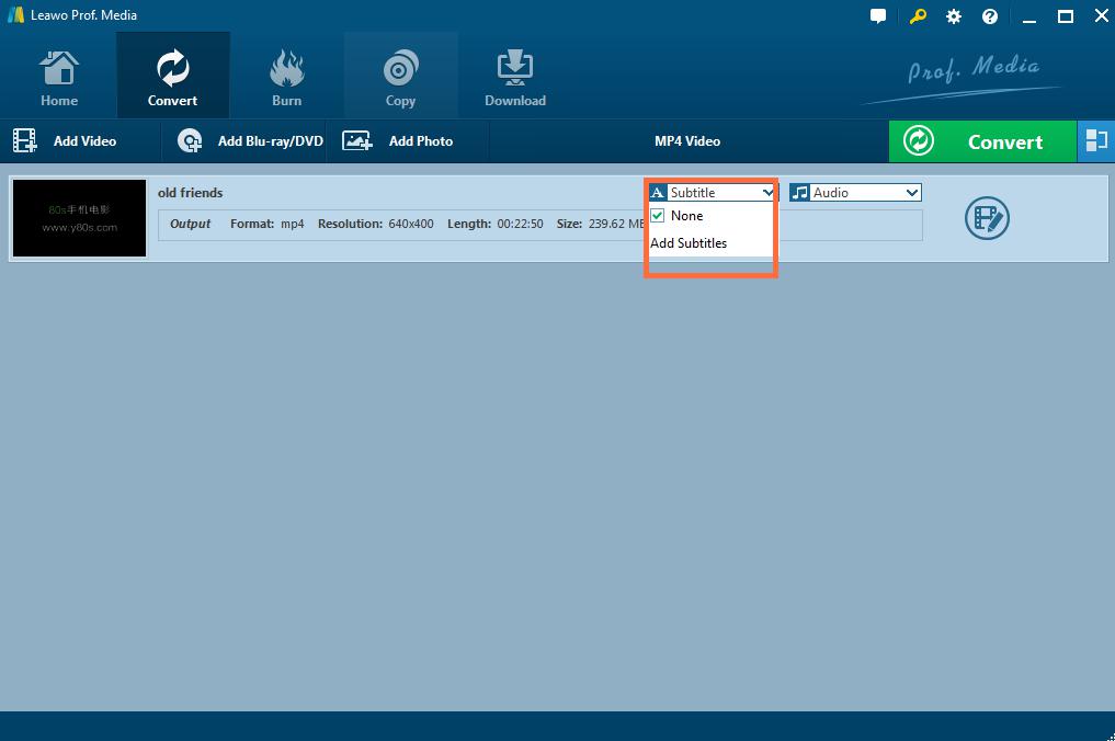 Lösung 1: Fügen Sie Untertitel zu einem Film hinzu, indem Sie Leawo Prof. Media verwenden.