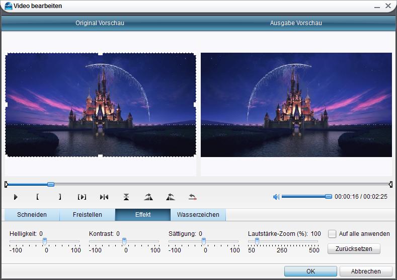 Es gibt verschiedene video Bearbeitungsfunktionen für Sie video-Dateien zu bearbeiten. Für eine konkrete Anleitung bitte rufen Sie Wie Videos mit Leawo Total Media Converter zu bearbeiten auf.