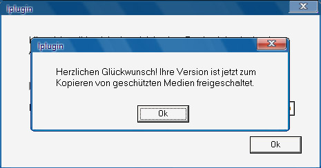 Klicken Sie auf OK und dann wird ein Fenster ausspringen, die Ihnen zeigt, dass das Programm zum Kopieren von geschützten Medien freigeschaltet worden ist.