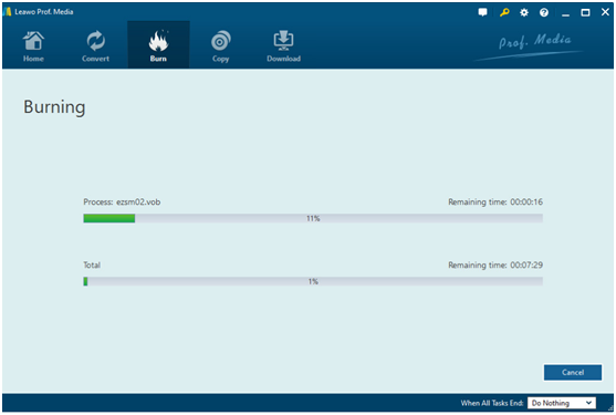 Schritt 7: Klicken Sie auf “Burn”-Taste, um den Konvertierungsprozess von Video auf DVD zu starten.