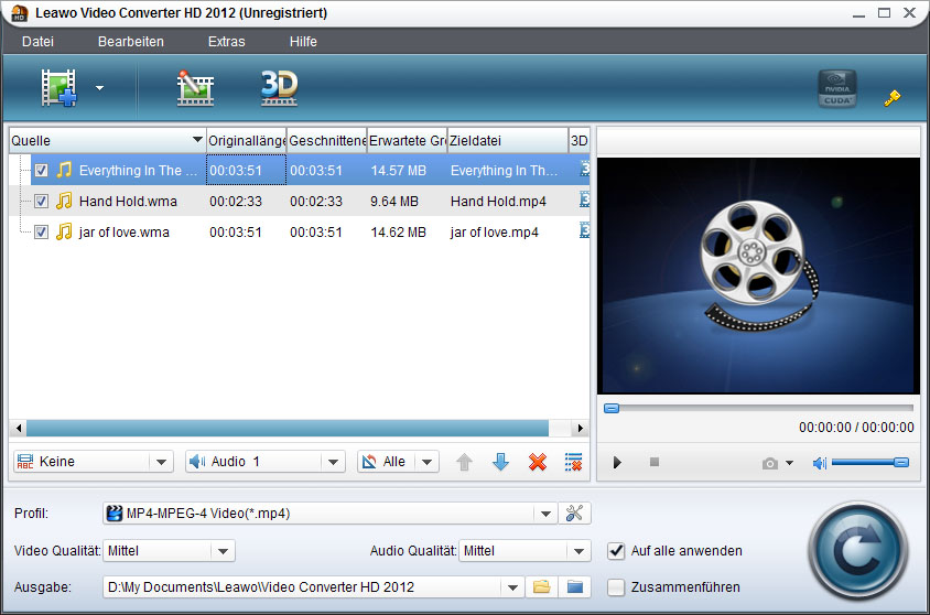 Der WMA in MP3 Converter, den wir verwenden, um WMA-Audioformat anzugehen, heißt Leawo Video Converter HD. Mit leistungsstarker Konvertierungfähigkeit ist dieser professioneller WMA in MP3 Converter in der Lage, die Umwandlung von WMA in MP3 in wenigen Schritten zu verwirklichen. Es kann auch Audio-Dateien, einschließlich WMA, OGG, FLAC, MP2, AC3, RA, M4B, AAC, CAF etc. in iTunes-kompatible Audioformat wie MP3, AIFF, WAV oder M4A umwandeln. Übrigens, Mit dem Mac WMA in MP3 Converter können Sie auf Mac-Betriebssystem WMA in MP3 umwandeln.