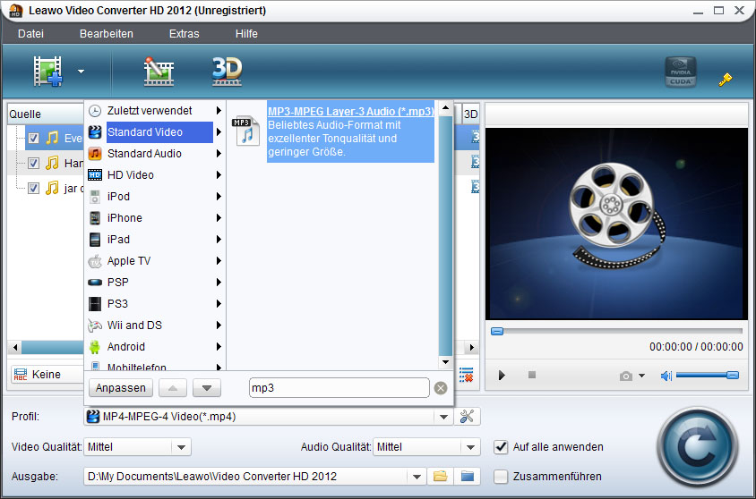 Wählen Sie MP3 als Ausgabeformat