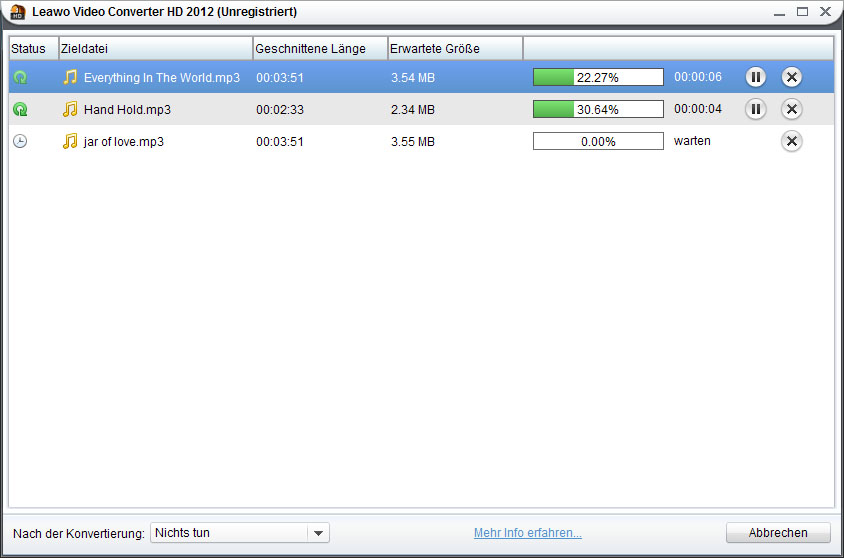Neben der Umwandelung von WMA in MP3 auf dem Mac kann Leawo Video Converter HD noch die Umwandlung zwischen anderen Audio und Videoformaten durchführen. Für Mehr Informationen wenden Sie an: https://www.leawo.org/de/video-converter-hd_tutorial/