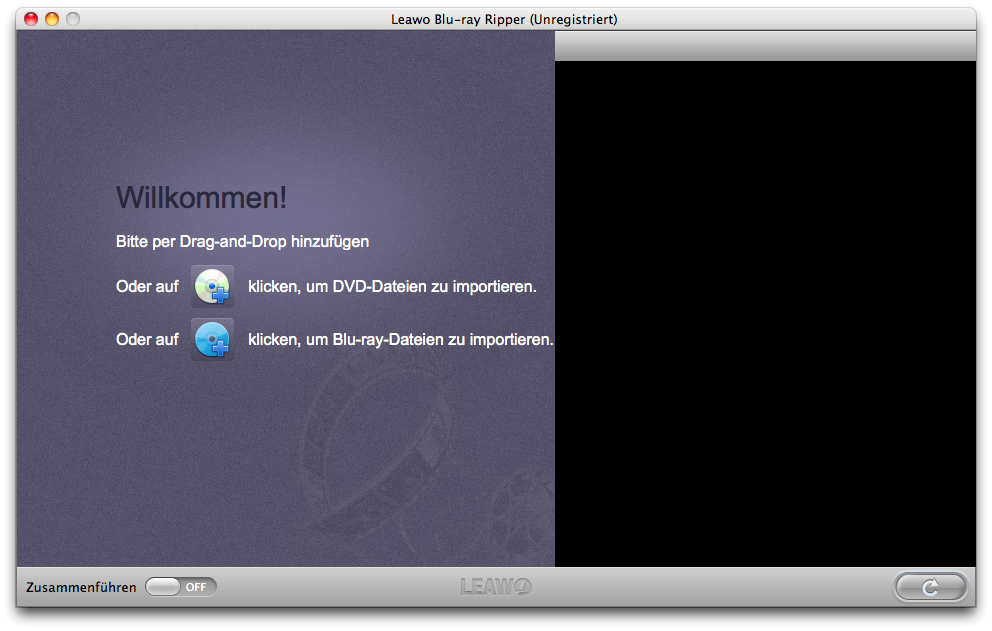 Downloaden Sie Leawo Blu-ray Ripper (Mac) zuerst. Nach der Installation führen Sie 3D Blu-ray Converter auf Ihrem Mac mit einem Doppelklick auf das Desktopsymbol aus. Dann führt Sie der 3D Blu-ray Converter mit einer Art Kurzanleitung in den Umgang mit sich ein. Sie können z.B. durch Drag-and-Drop oder einen Klick auf das Symbol „Blu-ray laden“ die Blu-ray-Disk in den 3D Blu-ray Converter importieren.