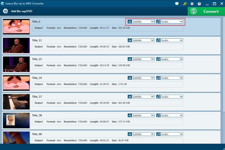 Schritt 4: Wählen Sie Untertitel und Audiospuren. Wenn der 3D-Blu-ray-Film importiert wurde, können Sie dann wählen, welche Untertitel und Audiospur Sie in der Output-MKV-Datei behalten möchten.