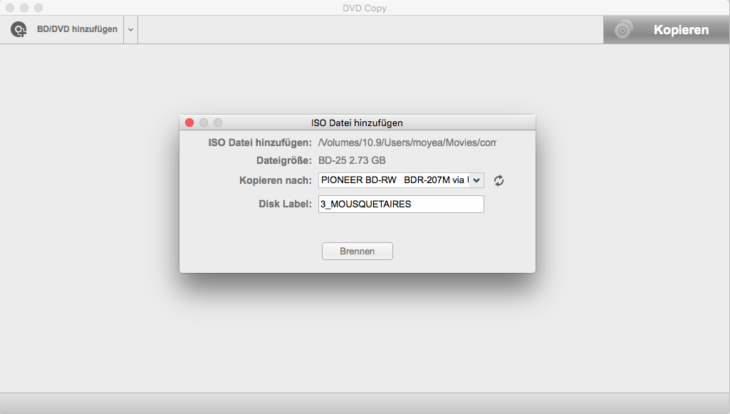 Danach klicken Sie auf die Schaltfläche “Brennen” im Fenster “ISO Datei hinzufügen” , um das Backup von ISO auf DVD auf Mac zu starten.