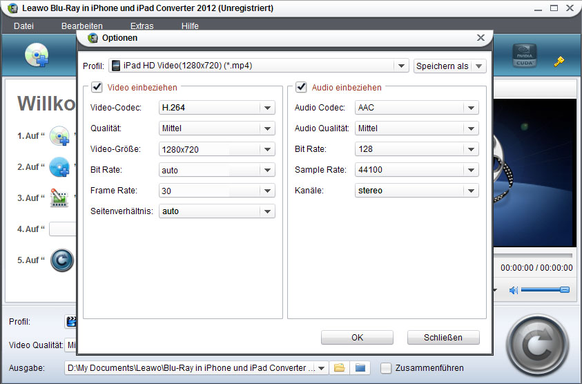 Leawo Blu-ray in iPhone und iPad Converter ist absolute Ihre beste Wahl. Der ist ein professionelle Blu-ray iPad Converter, mit dem Sie Blu-ray Filme direkt ohne Umwege iPad-kompatibel umwandeln können. Untenstehend zeigt Ihnen eine Kurzanleitung, wie man mit diesem Blu-ray iPad  Converter Blu-ray Filme für iPad konvertiert.