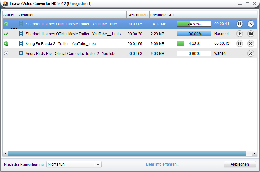 Um ein Video mit dem Adobe Flash Player abspielen zu können, müssen Sie zuerst Ihre WMV Datei in das FLV Format konvertieren. Der Leawo Video Converter ist da die perfekte Lösung. Sie können WMV Videos zu FLV konvertieren, aber auch andere Formate. Durch das Konvertieren der Dateien in das FLV Format werden die Dateien überraschend klein. Sie können das Video vorher noch schneiden, verkürzen, und ein Wasserzeichen einfügen. Der WMV in FLV Converter konvertiert aber nicht nur WMV zu FLV, sondern auch AVI in FLV, WMV in MP4 und WMV in MP4 mit H.264.