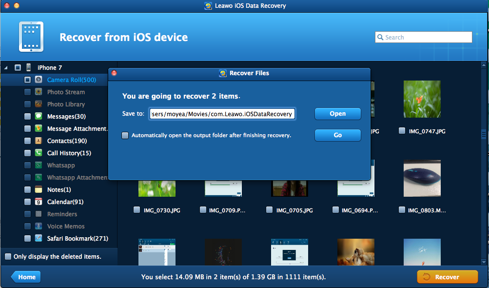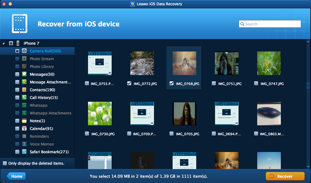 Der DFU-Modus unterstützt die Wiederherstellung von 14 Datentypen, 8 von ihnen werden auch im Normalmodus unterstützt und 6 von ihnen können nur im DFU-Modus gefunden werden. Die 8 Datentypen, die sowohl der Normalmodus als auch der DFU-Modus bei der Wiederherstellung unterstützen, sind Nachrichten, Kontakte, Anrufliste, WhatsApp, Notizen, Kalender, Erinnerungen, Safari-Lesezeichen. Die 6 Datentypen, die nur der DFU-Modus wiederherstellen kann, sind Fotoalben, Foto Stream, Photothek, Nachrichtenanhänge, Sprach Memos, WhatsApp-Anhänge. Der DFU-Modus ist derzeit nur für iPhone 4 und iPod Touch 4 verfügbar.