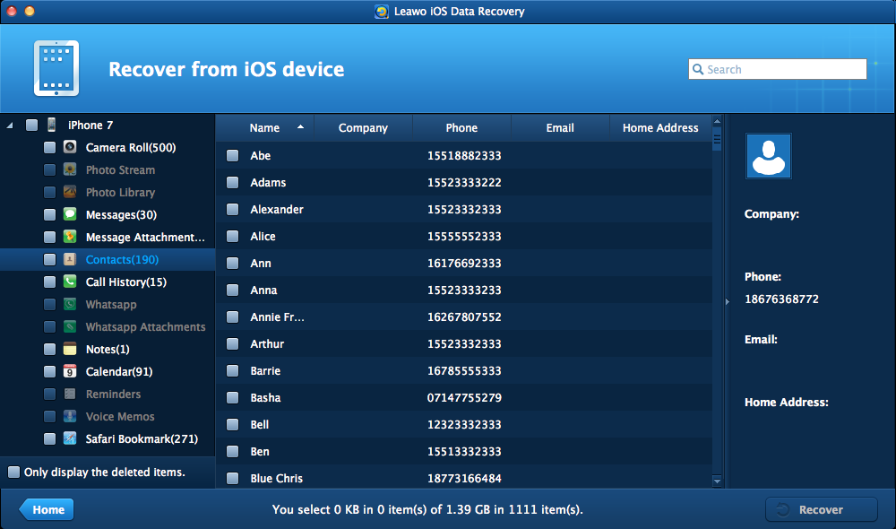 Wie bereits erwähnt, können Sie Daten direkt auf dem iOS-Gerät wiederherstellen. Tatsächlich gibt es zwei Modi, um Daten von einem iOS-Gerät wiederherzustellen, einen normalen Modus zur Wiederherstellung von Daten wie Nachrichten, Kontakten, Anruferliste, WhatsApp, Notizen, Kalender, Erinnerungen und Safari-Lesezeichen. Ein weiterer ist der DFU-Modus, der nicht nur alle Daten, die der Normalmodus wiederherstellen kann, sondern auch Datentypen wie Fotoalben, Fotostream, Fotothek, Nachrichtenanhänge, Sprach Memos und WhatsApp-Anhänge wiederherstellen kann. Der DFU-Modus unterstützt vorerst nur iPhone 4 und iPod touch 4, während der Normalmodus alle iOS-Geräte seit dem iPhone 3GS unterstützt.