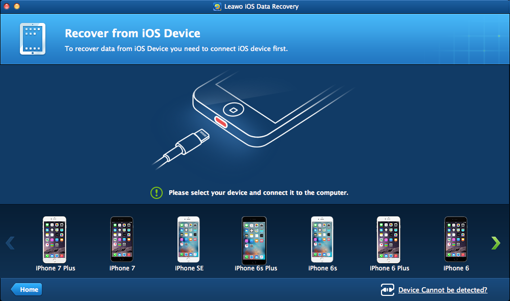 Schließen Sie das iOS-Gerät über das USB-Kabel an das MacBook an. Die Software erkennt das iDevice automatisch.