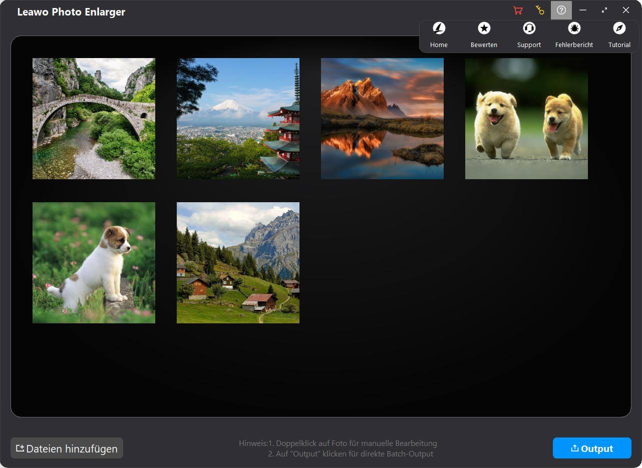Detaillierte Schritte, die Ihnen zeigen, wie Sie mit Leawo Photo Enlarger Fotos auf verschiedene Weise optimieren können. Sie lernen hier auch die Batch- bzw. Einzelbildoptimierung kennen.