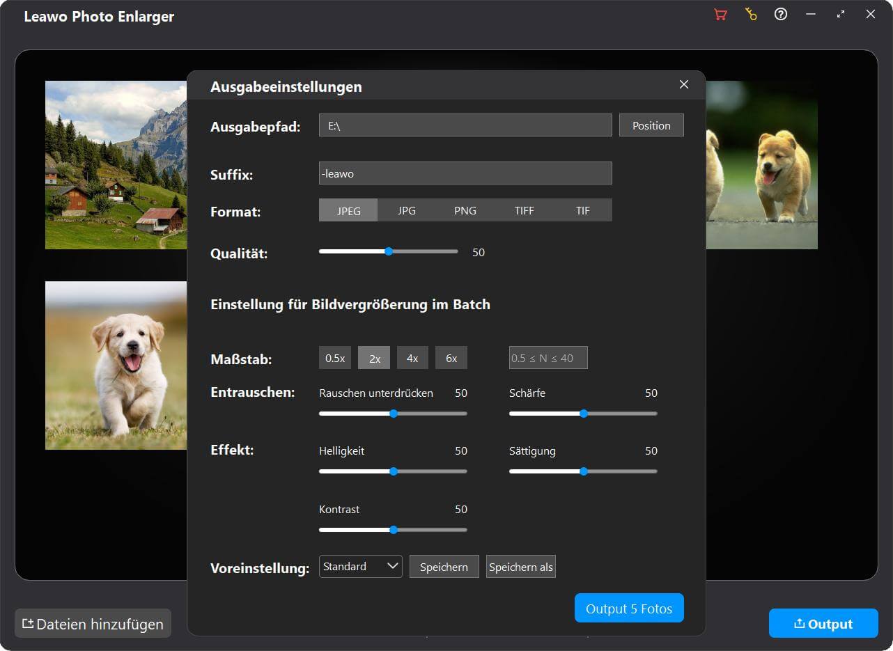 Um alle geladenen Fotos im Batch zu vergrößern, klicken Sie auf die Schaltfläche “Output”