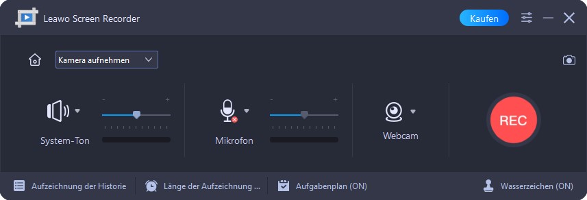 Leawo Screen Recorder bietet eine intuitive Benutzeroberfläche und eine klare Anleitung sowohl für Anfänger als auch für Experten, um die Webcam aufzunehmen.