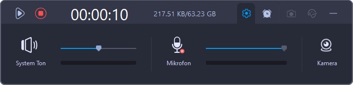 Wenn Sie den "Systemton" oder das "Mikrofon" während der Webcam-Aufnahme aktivieren oder deaktivieren möchten, klicken Sie auf die Schaltfläche "Einstellungen" und dann auf das Symbol der jeweiligen Funktion, um die entsprechende Funktion zu aktivieren oder zu deaktivieren.
