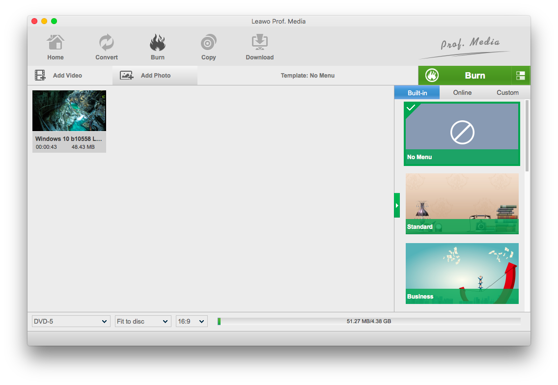 Leawo Prof. Media 13 für Mac verfügt über einen Diashow-Maker und die Möglichkeit, das Diashow-Video auf Blu-ray/DVD-Discs zu brennen.
