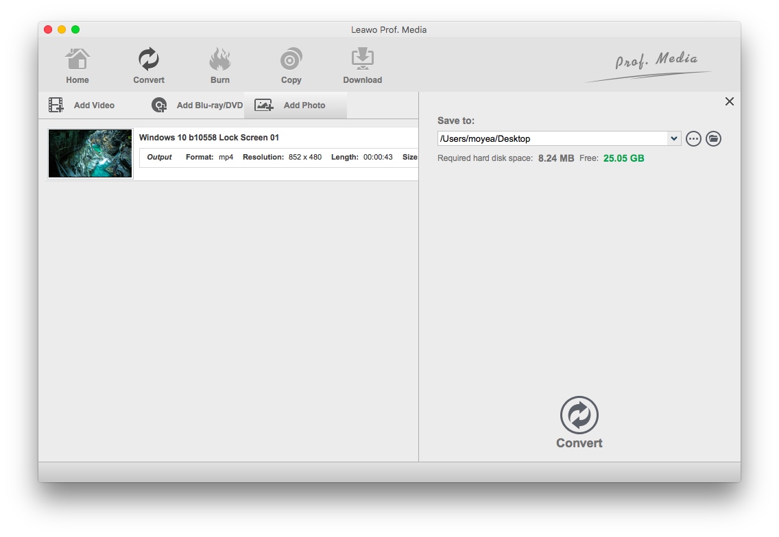Um eine Foto-Diashow zu erstellen, werden wir das Konvertierungsmodul in Prof. Media verwenden. Klicken Sie auf die Schaltfläche Konvertieren auf der Hauptbenutzeroberfläche von Prof. Media, um das Modul Konvertieren zu starten.
