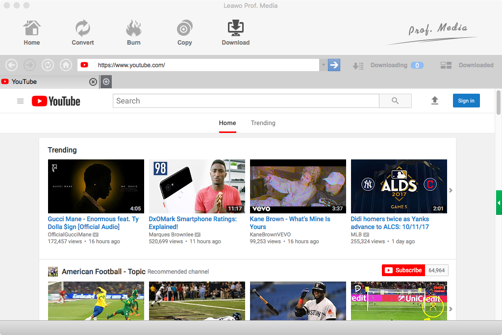 Klicken Sie auf die Schaltfläche Download in der Menüleiste oben oder auf Video Downloader, um das Video Downloader-Modul zu öffnen. Standardmäßig geht es zu YouTube.com. Sie können eine neue URL direkt in das Adressfeld eingeben oder einfügen, um zu einer neuen Website zu gelangen.