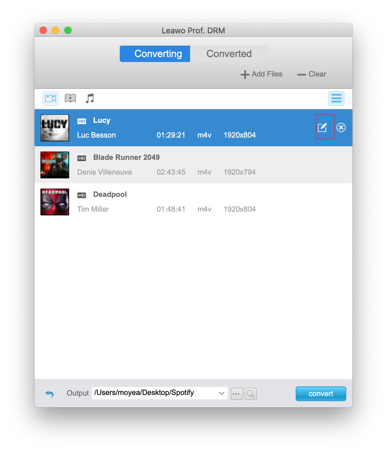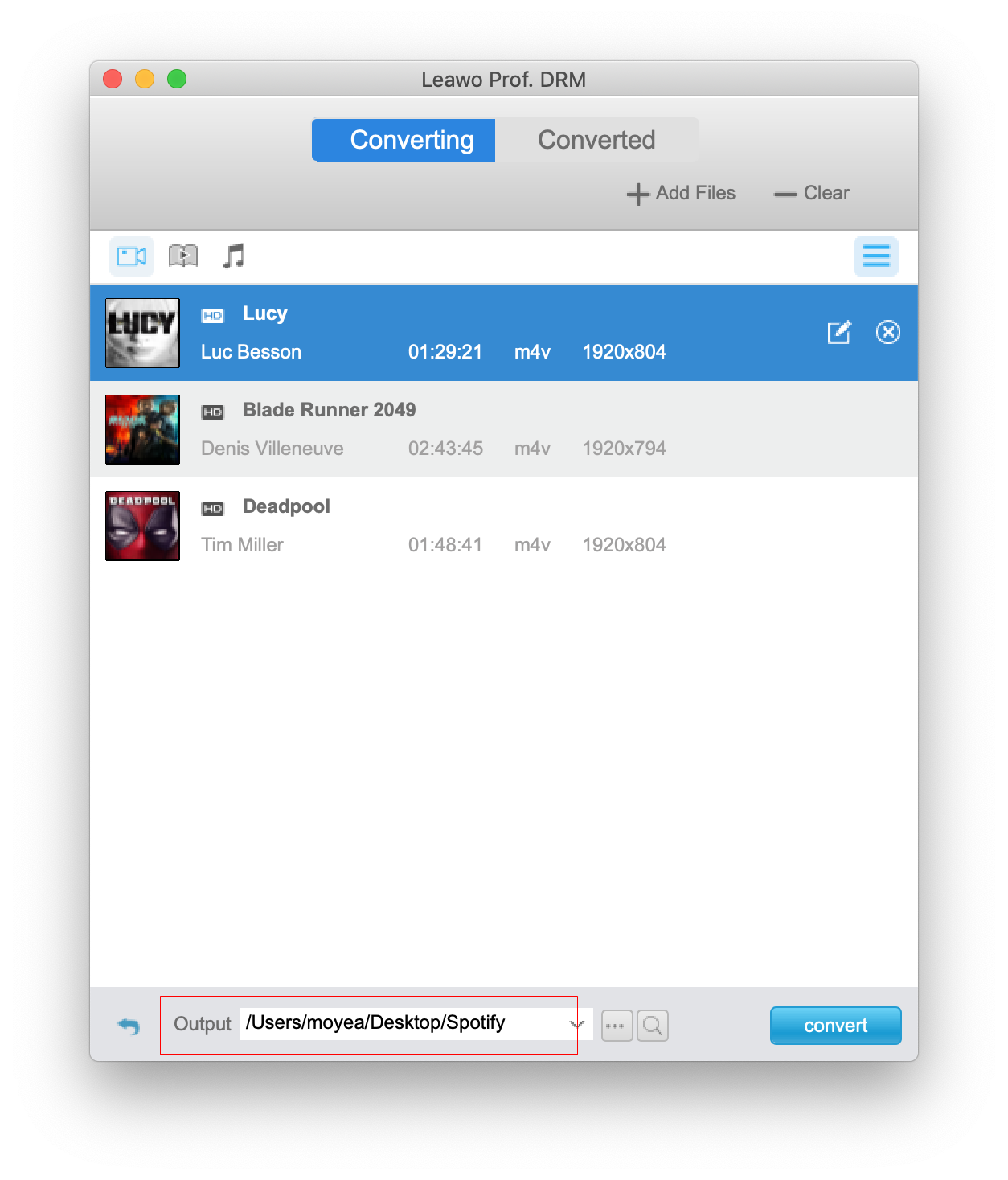 Wenn Sie alle Einstellungen vorgenommen haben, klicken Sie auf den blauen Button “Convert” am unteren Rand der Benutzeroberfläche, um DRM von den iTunes M4V-Videos zu entfernen und M4V in MP4 zu konvertieren. Warten Sie bitte einen Moment bis der DRM-Entfernungs- und Konvertierungsprozess beendet ist.