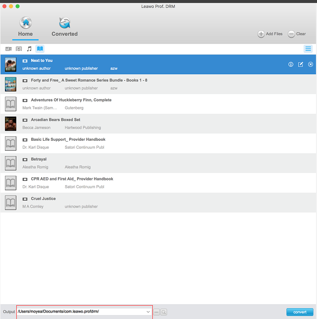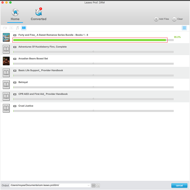 Zum freien Lesen Ihrer digitalen Lieblingsbücher auf anderen Desktop-APPs oder Geräten. Leawo Prof. DRM for Mac kann Ihnen helfen, DRM von digitalen Büchern zu entfernen und dann in DRM-freie Dateien wie epub, mobi, azw3, txt, etc. zu konvertieren. Vor allem kann Leawo Prof. DRM for Mac nach dem Entfernen des DRM eine 100%ige Qualität des Originals beibehalten. Es ist erwähnenswert, dass das Programm um das 50-fache schneller ist, wenn es DRM entfernt und als DRM-freies Format für digitale Bücher gespeichert wird. Das heißt, Ihr DRM-geschütztes eBook wird in Sekundenschnelle konvertiert.