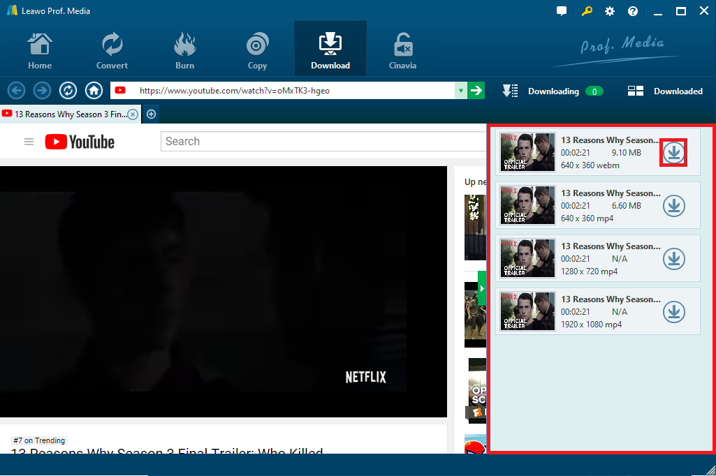 Besuchen Sie die offizielle Webseite des Leawo Video Downloaders. Klicken Sie auf Kostenlose Testversion, um das Installationspaket herunterzuladen. Wenn Sie es installieren, wird es in einem Softwarepaket namens Leawo Prof. Media angezeigt. Öffnen Sie Prof. Media und es werden Ihnen mehrere verschiedene Softwaremodule angezeigt.