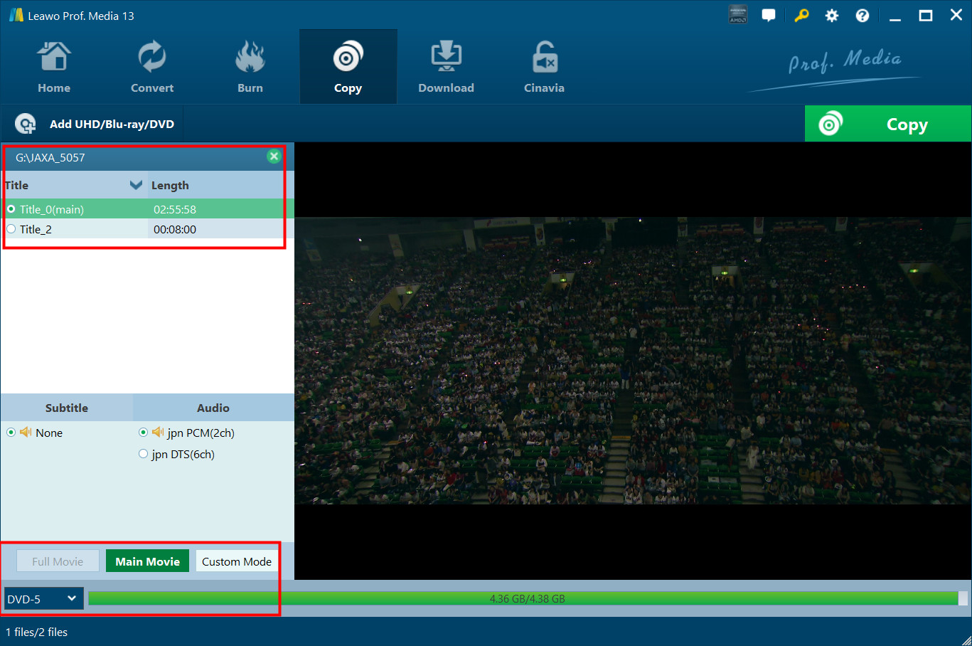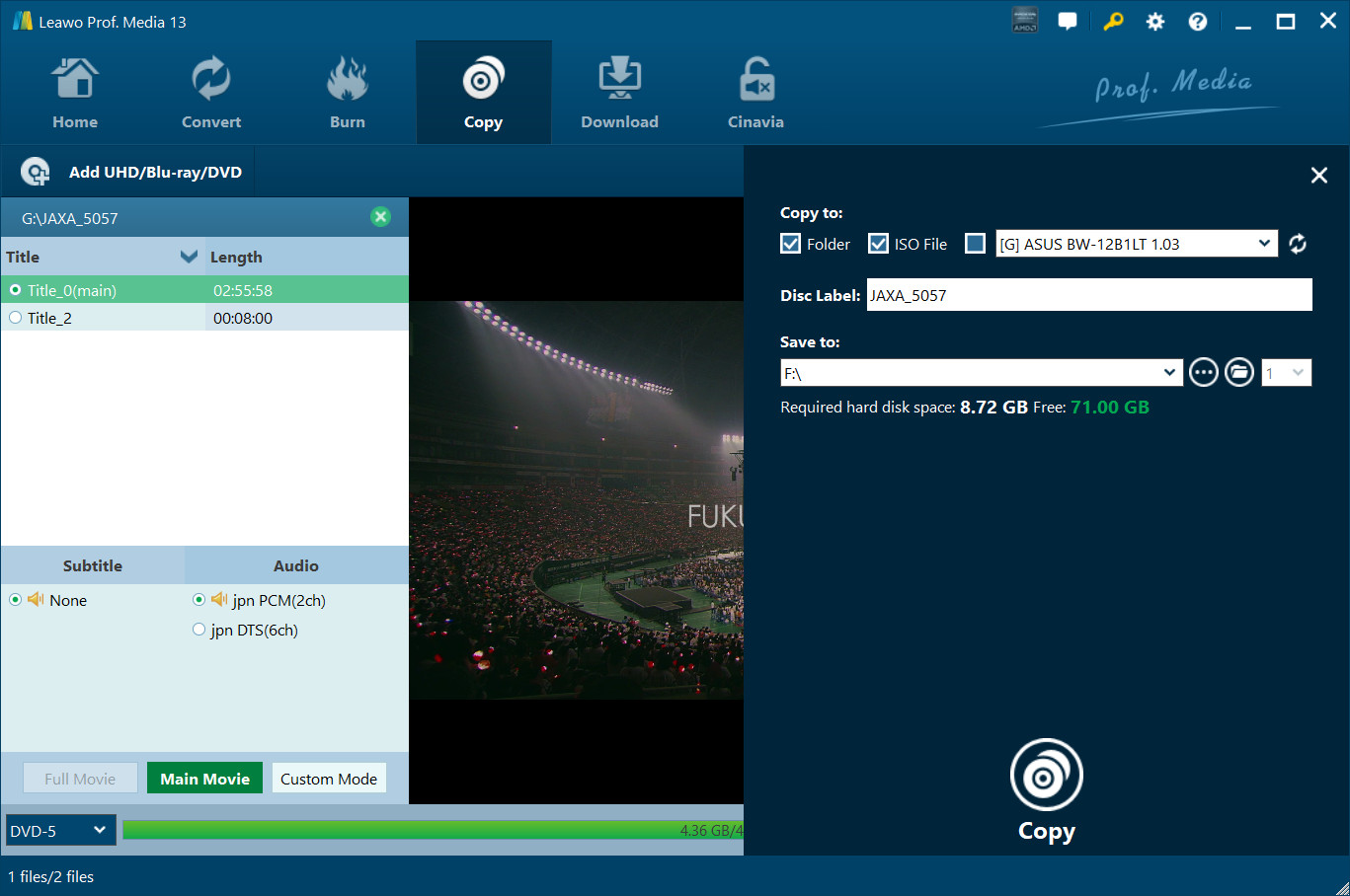 Run Prof. Media, click Copy tab to enter DVD Copy module.