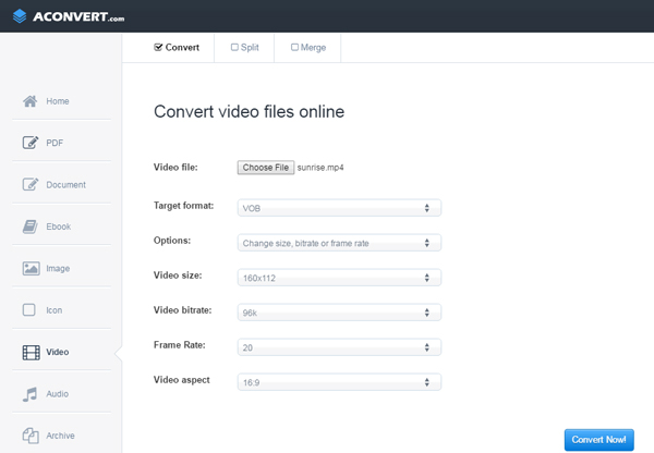 Visit the official website of Aconvert, and choose “Video” on the left to enter the Aconvert video converting interface. First, we need to import MOV file by clicking “Choose File”.