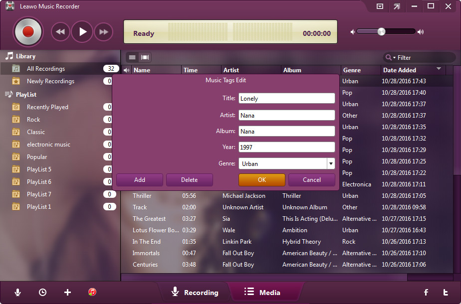 The music tags can be automatically downloaded and added to the recordings. But sometimes you need to edit music tags manually. You can just select a recording and right click it to choose “Edit Music Tag” to manually edit music tags.