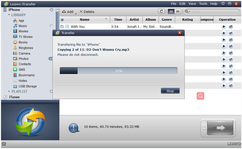 Since you have downloaded best songs of the 2010s, you may want to transfer them to your iPhone for playback. Leawo iTransfer transfers 12 kinds of files, like photos, music, videos, SMS, contacts, etc. between iOS devices, iTunes and PCs. You can download and install the program on your PC, and then transfer songs to iPhone in easy steps.