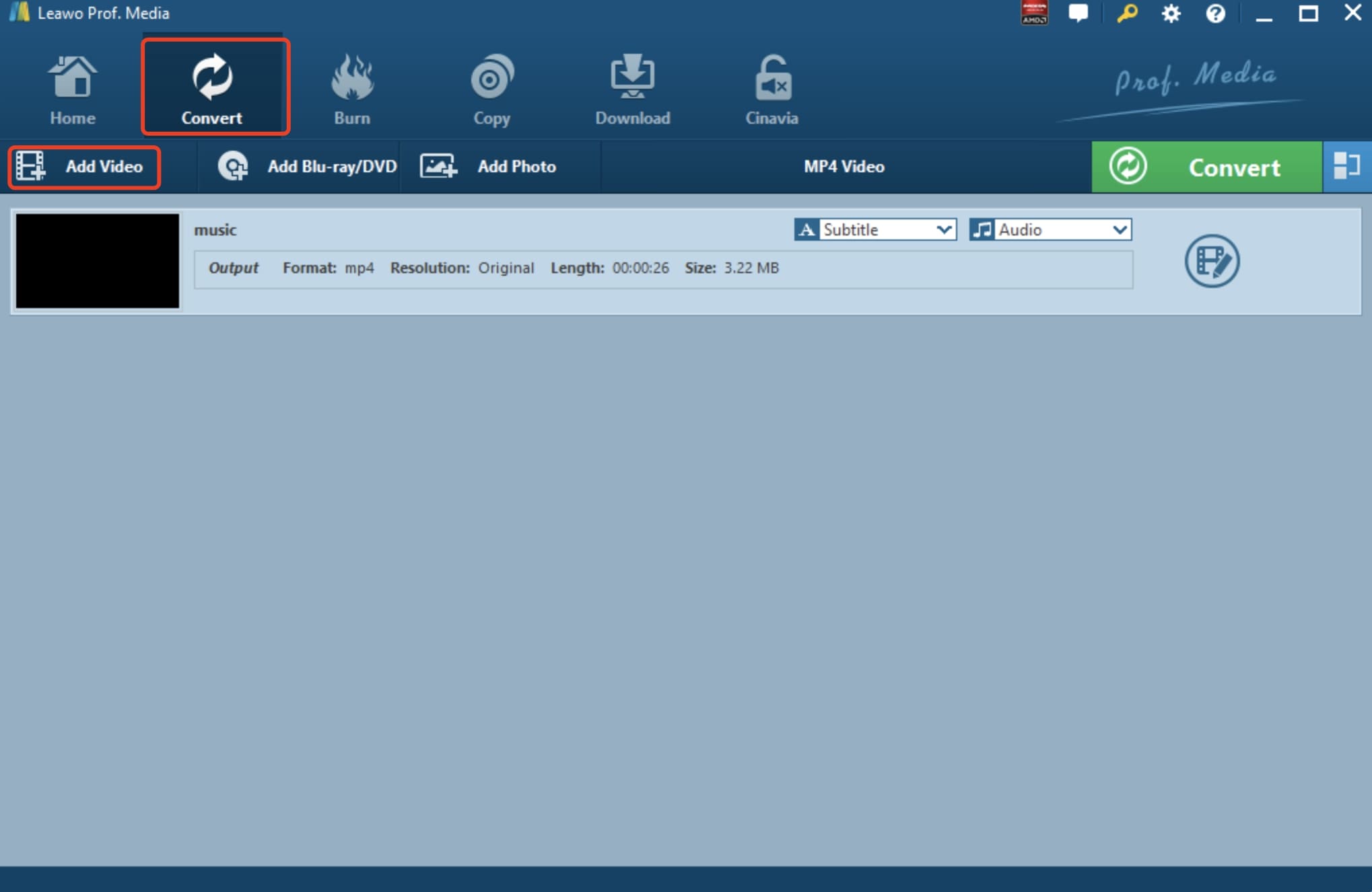 Launch Leawo Video Converter by clicking “Video Converter” icon in the main interface of Leawo Prof. Media. Click “Add Video” on the top menu to add source FLAC file; alternatively, you can directly drag and drop source audio file to the main screen.