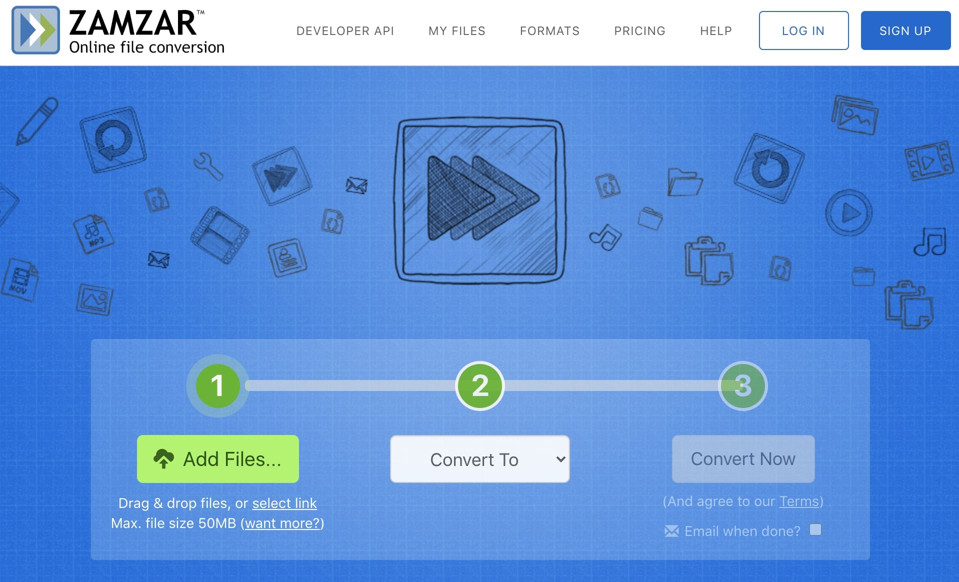 If you just google, there are plenty of tools like Zamzar that can help you with file conversion. The benefit of Zamzar is that you don’t have to download software and install it on the computer which might be convenient for some people. But the limitation is rather obvious as the maximum file size is only 50MB, which makes it impossible for a lot of audio or video conversion, as audio and video can be large size files in most cases.