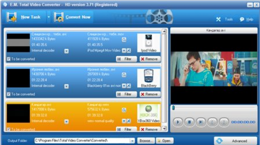 E.M Total Video Converter is an extremely powerful and full-featured converter software that supports almost all video and audio formats. It could help convert video for your mobile video player. With this powerful video tool, users can effortlessly achieve all multimedia demands.