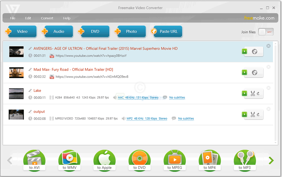 Freemake Video Converter is a video conversion and editing software to convert between popular video formats, create image slideshows, music visualizations, and more. In addition to straightforward format conversion, the program also includes additional features that let you trim, join and rotate video content, extract audio tracks without quality loss and rip or burn DVD or Blu-ray discs.