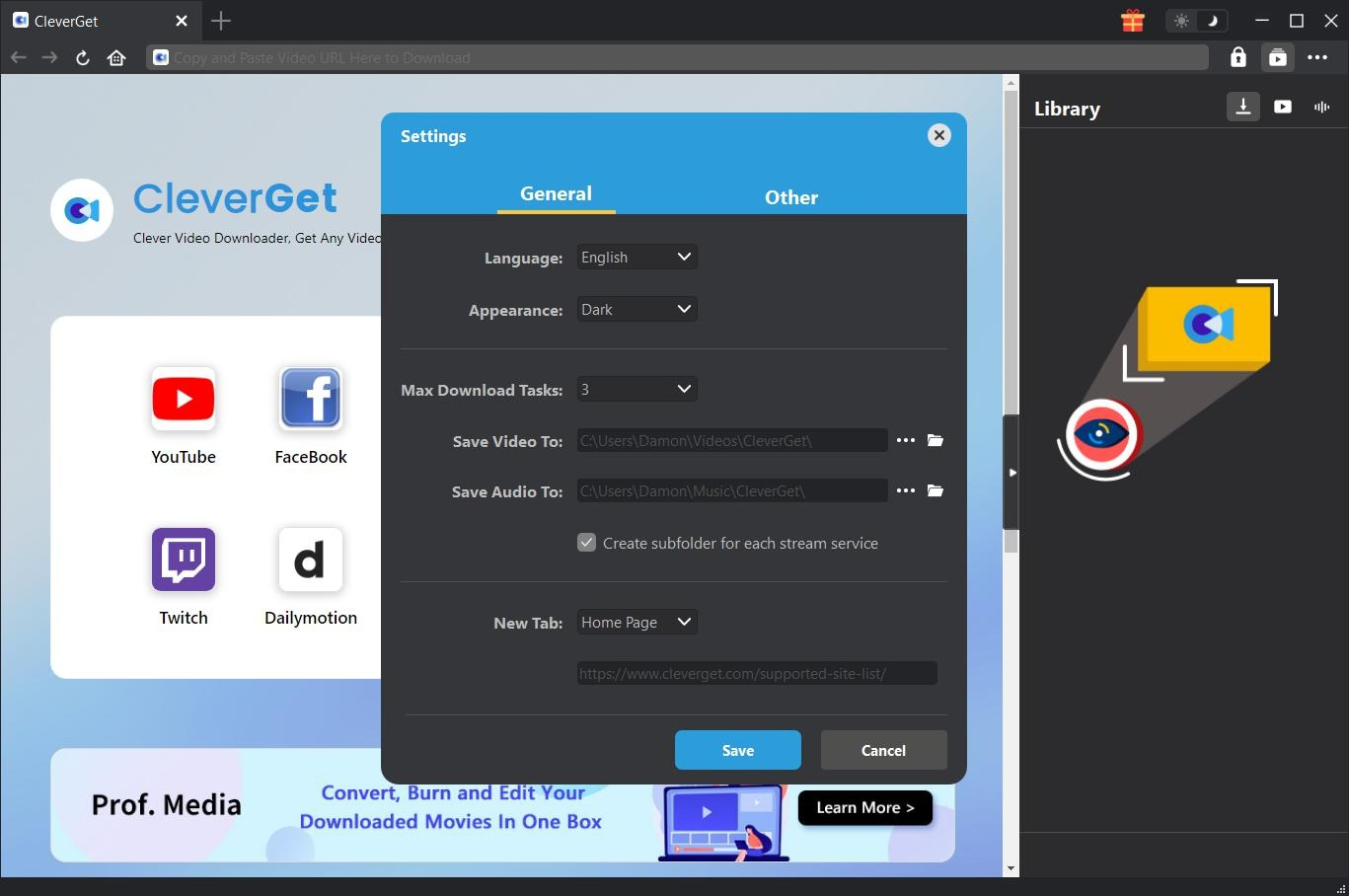 Now you can customise where CleverGet saves your downloads. Click the three lines in the corner to open the settings menu. Select the "Settings" option and then find the part about output directory. Here you can pick and choose the folder you want files to save in. Click "Save" when you're done.