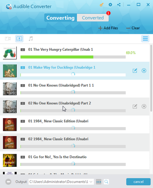 Click on “Convert” to convert the Audible AA audiobooks to MP3 format. The conversion time will depend on the number of files and the size of your audiobooks.