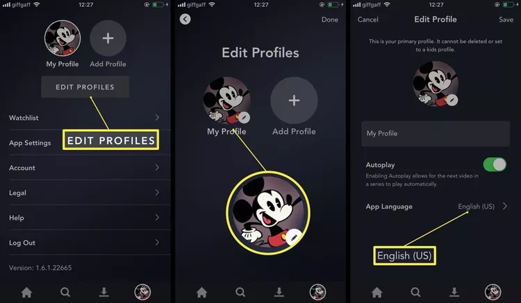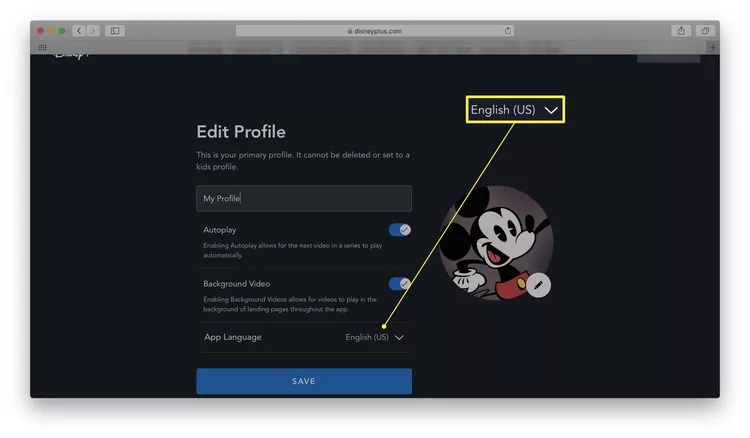 Step 3: In the "App Language" section of the "Edit Profiles" panel, set the Disney Plus app language to your desired language. Finally, click "SAVE" to save your settings.