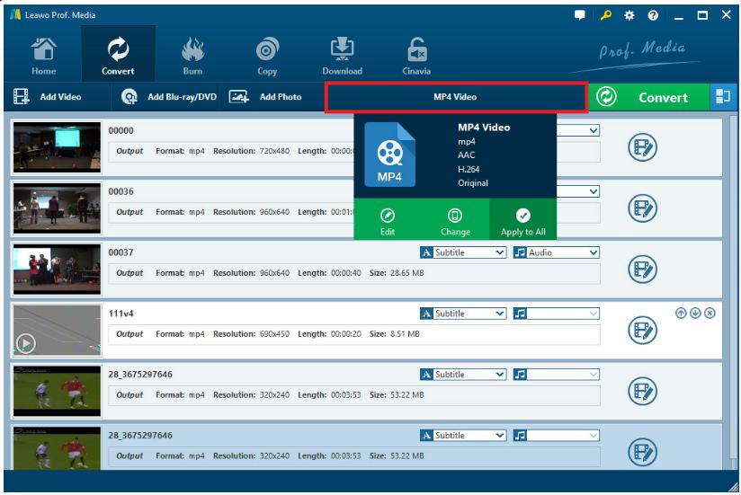 Apart from converting WLMP file to MP4, the Leawo Video Converter enables the user to convert files between 180+ formats from one to another. Converting M4V to MP4 is supported by the program as well.