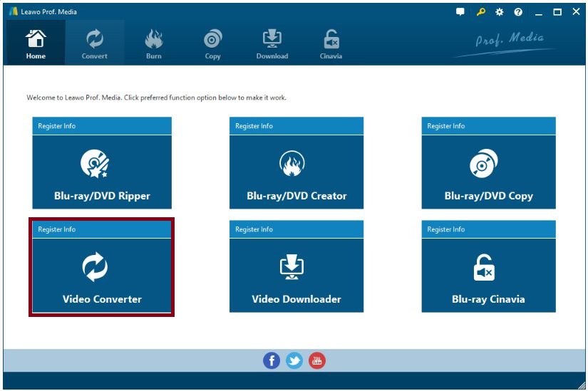 The video converter is one of the subroutines of Leawo Prof. Media. As long as you register for the Leawo Prof. Media, you will get 6 modules in total. You can also have video downloading with the video downloader such as downloading 4k videos from YouTube.