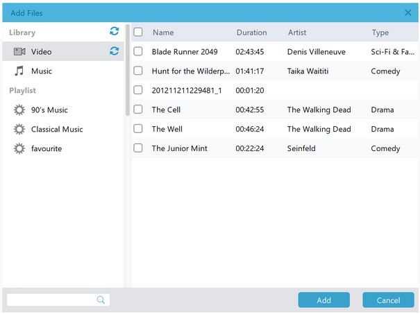 After entering the main interface of Video&Music Converter, click the "Add Files" button to browse video files from iTunes and add them to the program. Or you can directly drag and drop the file into the program.