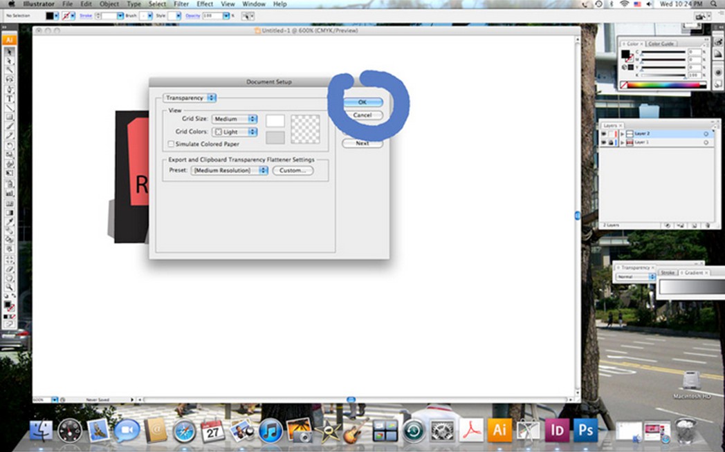 Step 2: Open the tool and then navigate to the menu of “File> Document Setup”. All the document properties will be seen on the screen. Here you need to choose the option of “Transparency” as the background. Hit on this option to tick it to continue. The default option may be the Artboard. Make sure you do not tick it before you edit your photo to be the one with transparent background.