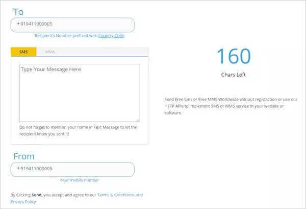 This site allows you to free send anonymous text message completely and there is no need to register.
